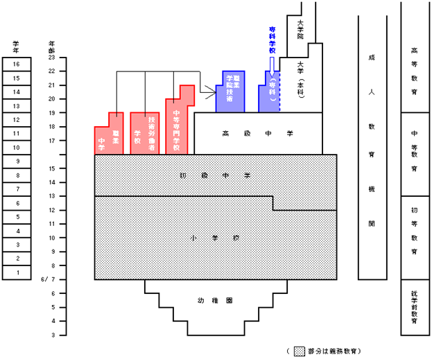 中国の学校制度は日本の学校制度とよく似ており、小学校6年制、初級中学3年制で、ここまでの計9年間を義務教育としています。その後は普通教育と職業教育に分かれており、大学など高等教育機関への進学を主とする高級中学校、職業技術教育を行う中等専門学校、技術労働者学校、職業中学校に分かれています。高等教育は大学が4年制(医学部、工学部などの一部は5年制)、大学院修士は2~3年制、博士課程は3年制となっています。