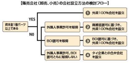 販売会社は、外国人事業法の規制対象業種になっていますが、最低資本金1億バーツ以上を出資すれば、