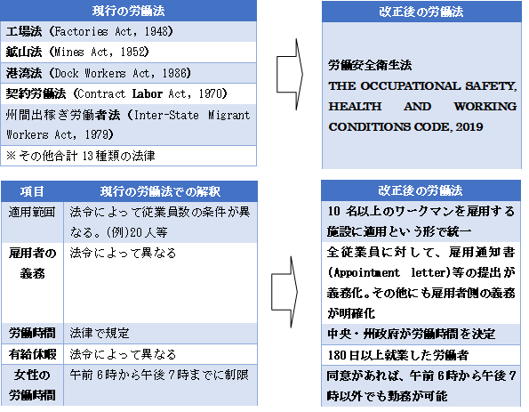 上記の労使関係法案もまだ国会審議中ではありますが、これまで複雑であった労働安全衛生に関する労働関連法が統合されることによって、労働者の労働環境の改善が将来的に期待できるのではないでしょうか。特に女性の深夜労働を許容する傾向にある点については、インド政府が男女平等を推進している裏付けであり、インドという国の未来が法令レベルでも明るいことも意味しています。