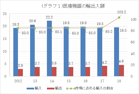 2018年時点において、トルコは医療機器市場の100%近くを輸入しています(表1) 。