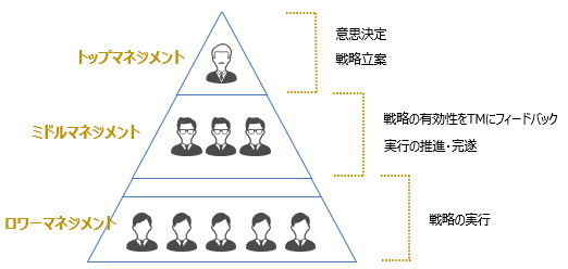 管理職(上の図でいうミドルマネジメント)というのは、戦略の有効性をフィードバックするのもしごとですが、