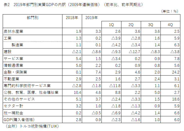 トルコの2019年実質GDP成長率について