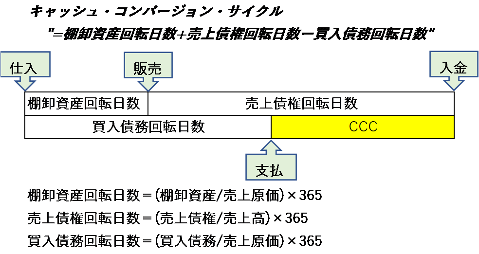 営業活動からのキャッシュフローを管理するための指標がCCC(Cash Conversion Cycle:キャッシュ・コンバージョン・サイクル)です。