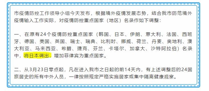 コロナウイルスの影響で日本から上海に滞在予定の方は14日間の指定ホテル又は自宅隔離措置を取る必要がありましたが、3月22日付上海发布によると、日本は重点地区からは外すと発表がありましたので、空港に着いてから、指定ホテルへ行く必要がなくなりました。