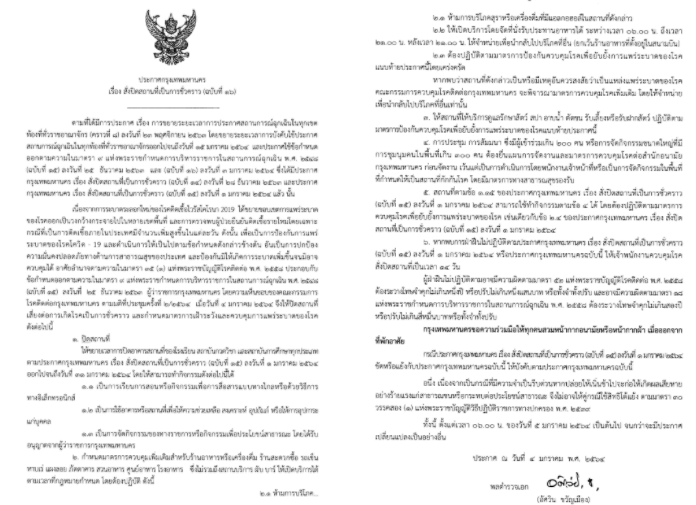 1月1日、バンコク都は、施設の一時閉鎖に関するバンコク都告示第15号を発表しましたが、
