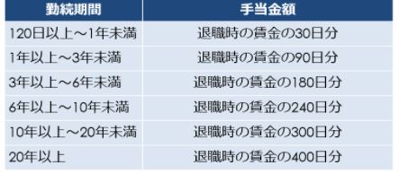 (改正前は、「勤務期間が10年以上の従業員に対して、退職時賃金の300日分」が最大となっていました。)