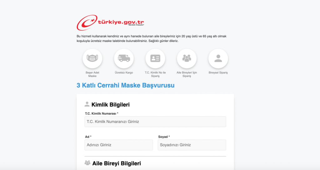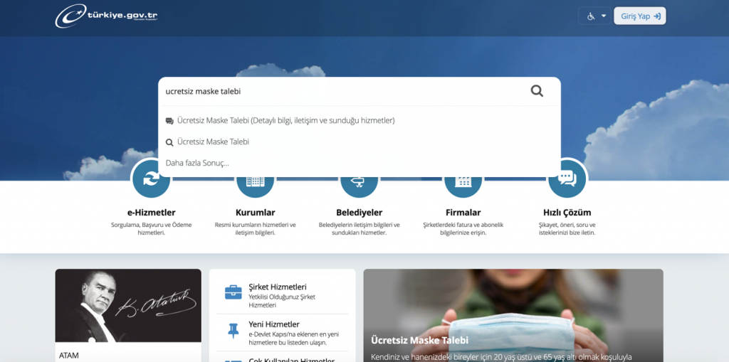 - 電子政府にアクセスし「ucretsiz maske talebi」と検索
