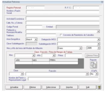 2.左側にあるメニュー内の「Acutualizar 更新」にて[Patrones 雇用主]をクリックします。