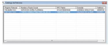 - [Patrones 雇用主]画面で、[選択]ボタン を押して、下記の写真の画面でRIESGOS DE TRABAJOを更新する会社を見つけます。