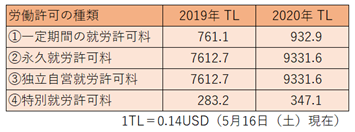 - 特別就労許可・・・トルコ国籍を有する方と婚姻関係にある方、過去にトルコに国籍を有した方、EU市民、外交官、トルコ官公庁勤務者、保護対象のシリア人が対象