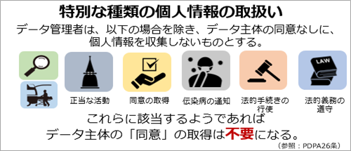 以下「特別な種類の個人情報」とは、センシティブな個人情報となります。例えば、人種や民族的な出自、