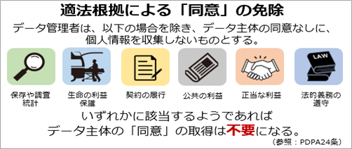 前述した同意取得の内容から、個人情報を取り扱う全ての場合に、データ主体から同意を得る必要があるのでは…?と思うかもしれませんが、
