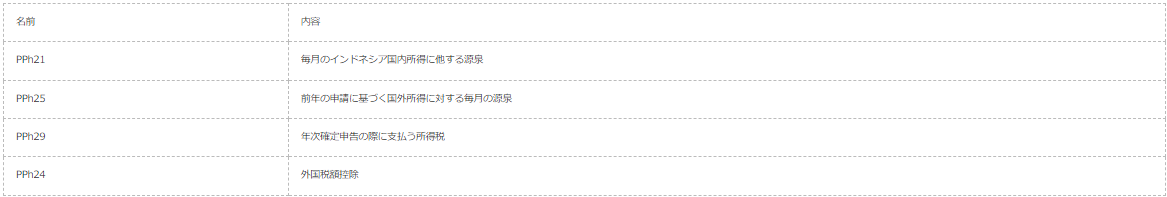 PPh21については、日本でもなじみの強い毎月の給与額を基に計算される源泉となります。これはインドネシア法人より支払われる給与に基づいて計算されるため、インドネシア法人でのみ給与を受け取っている方はPPh21のみで所得税の支払いは概ね完結します。