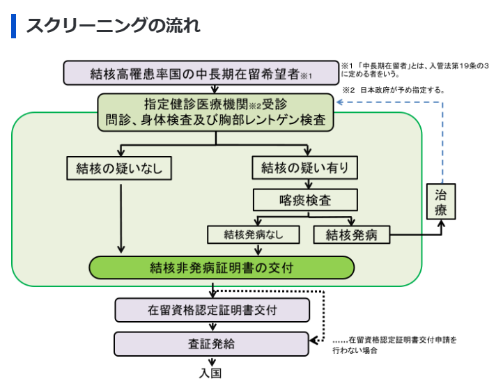 「結核非発病証明書」とは、渡航者が日本に入国する前に結核スクリーニングを実施し、結核の発病がないことを証明する書類を指します。