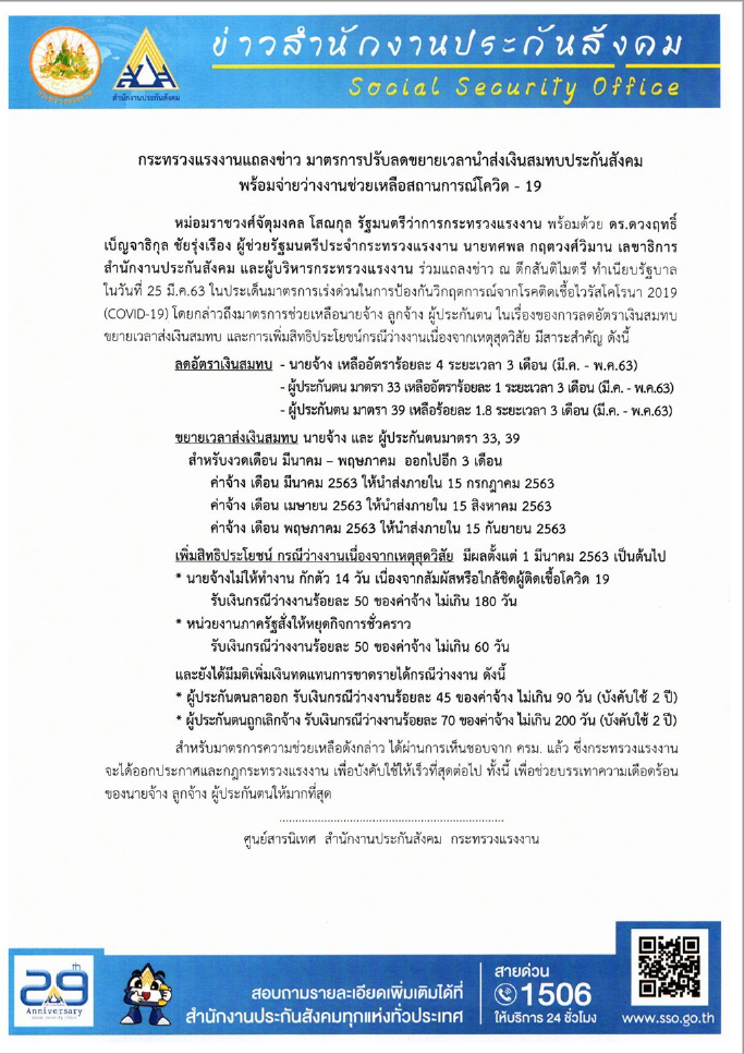 また、タイ語となり恐れ入りますが、添付が社会保険局より通知のあった内容になります。