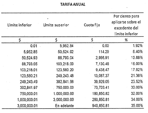 例として、140,000.00MXNのケースにおける税額の計算手順は下記にて記載します。