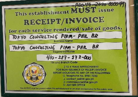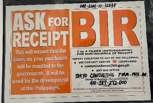 こちらの主な内容は、Notice to issue Receipt/ Invoice (NIRI)つまりBIRから取得する領収書及び請求書の発行を促す掲示物の更新について記載されています。これは、すべての事業主や販売店が誰にでも目に付く場所へ掲示する義務があるものです。