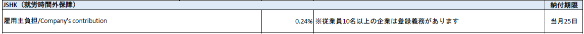 本日は、2024年度版の JSHK (就労時間外保障の料率を掲載いたします。