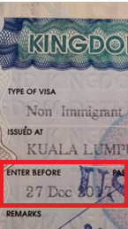 「ENTER BEFORE」と書かれた日付(※以下赤枠参照)が、日本(またはタイ国外)で取得したビザの有効期限となっています。