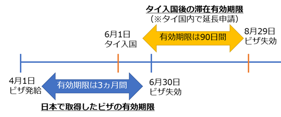 日本(またはタイ国外)で取得したビザの有効期限と、タイ入国後の滞在有効期限と間違えてしまうケースもありますが、