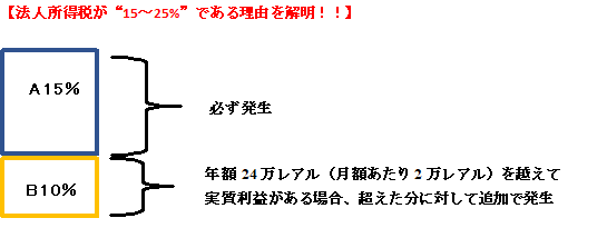 法人所得税のところに注目していただきたいのですが、“15~25%”と記載されております。