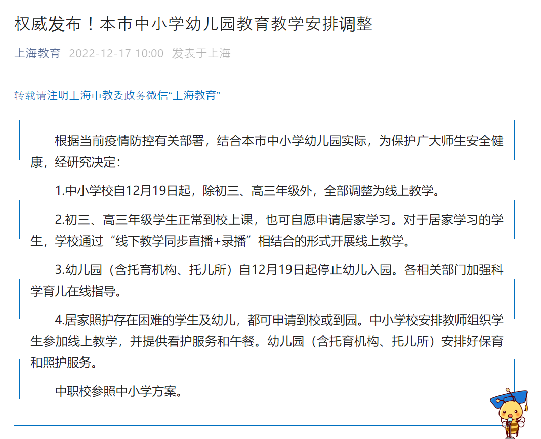 权威发布!本市中小学幼儿园教育教学安排调整 (qq.com)